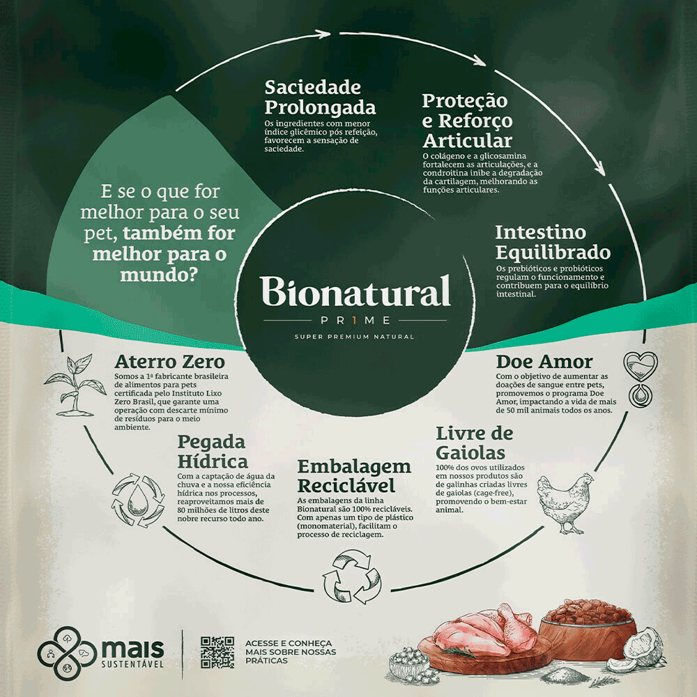 Além de proporcionar saciedade, esta ração super premium também ajuda a proteger e reforçar as articulações do seu cão, promovendo mobilidade e conforto físico. Os componentes ricos em ácidos graxos e antioxidantes trazem benefícios extraordinários para a saúde articular e o sistema imunológico. Ainda, sua fórmula favorece um intestino mais equilibrado, garantindo uma digestão saudável e regular para manter seu pet ativo e com energia.